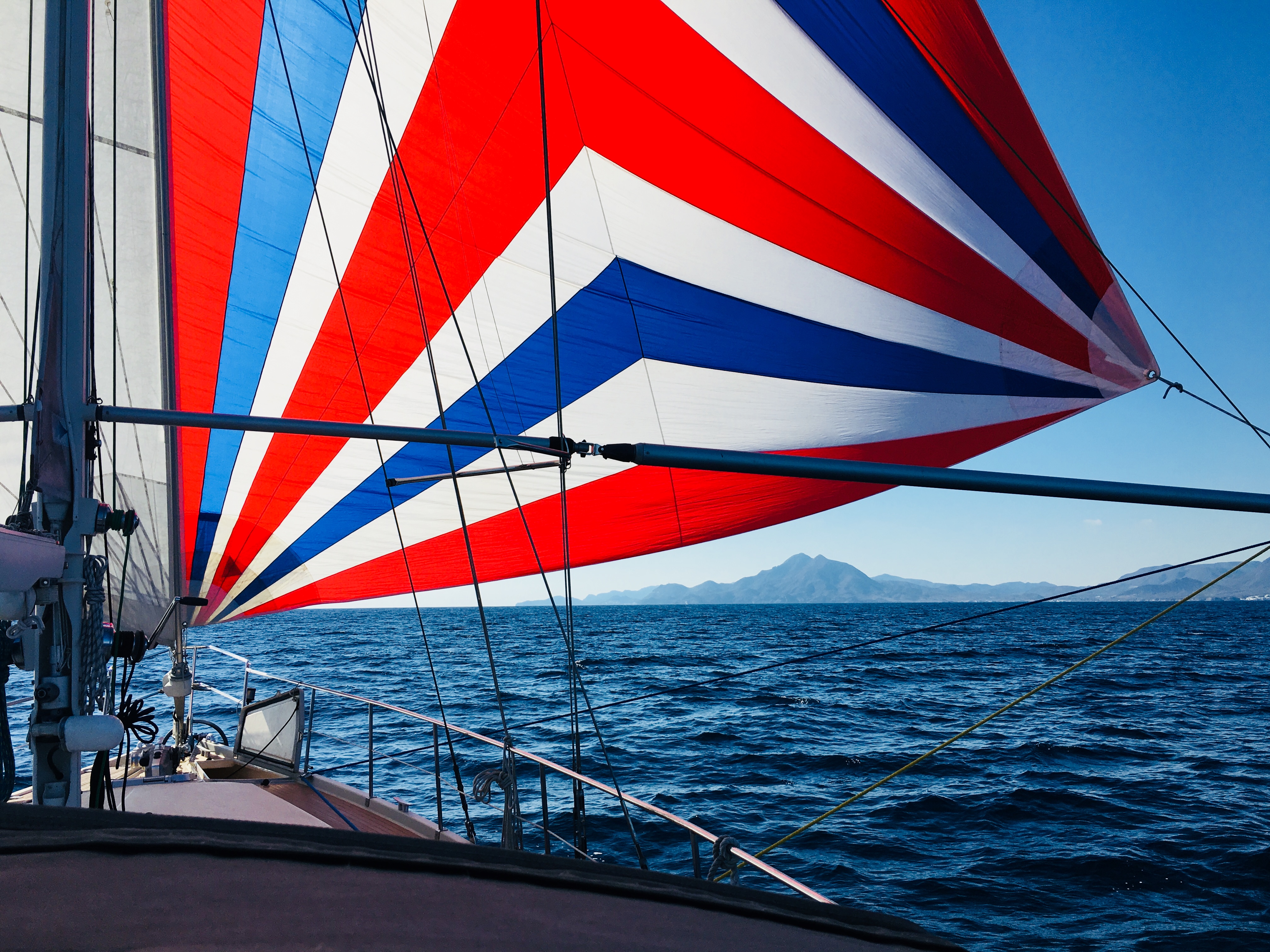 After a few hours we did have some lovely sailing though, on my night watch I had a steady 12 knots for two hours and later on in the day, David enjoyed some sailing with 20 knots on the beam. We even got the ballooner out, which was the first time setting up for me and was absolutely great fun!
