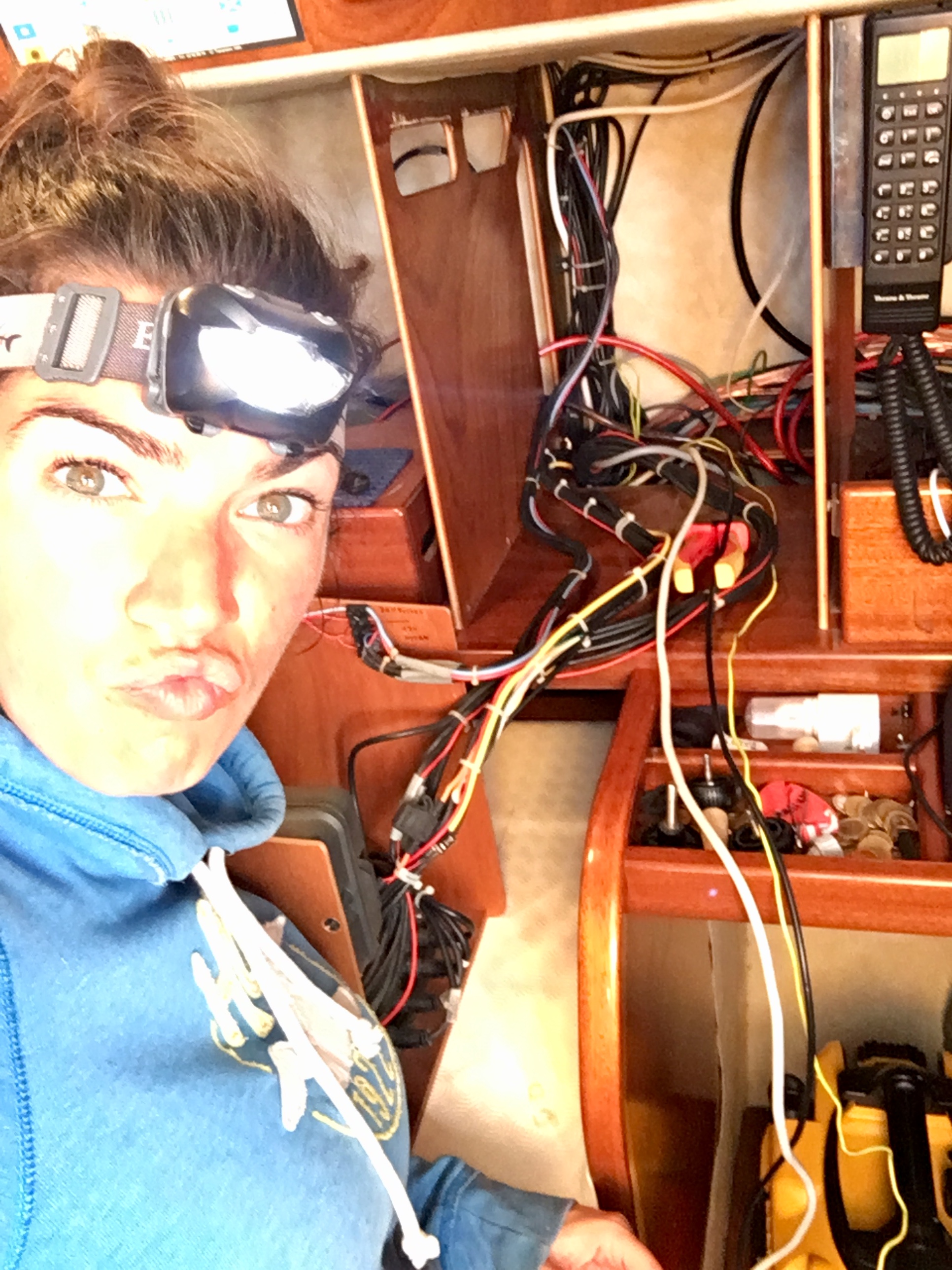 So David has been scraping away, where I stopped this after a day and started on maintaining the winches and some electrics. We have two gps systems and the associated mushrooms were attached on the backstays as well as our sat sat phone antenna. It doesn’t look very pretty and therefore we preferred to remove them. We will sell the sat phone but keep the gps systems and connect the mushrooms inside instead of outside on the boat. We tested it inside and there is no difference in accuracy of our location. A very nice result.
