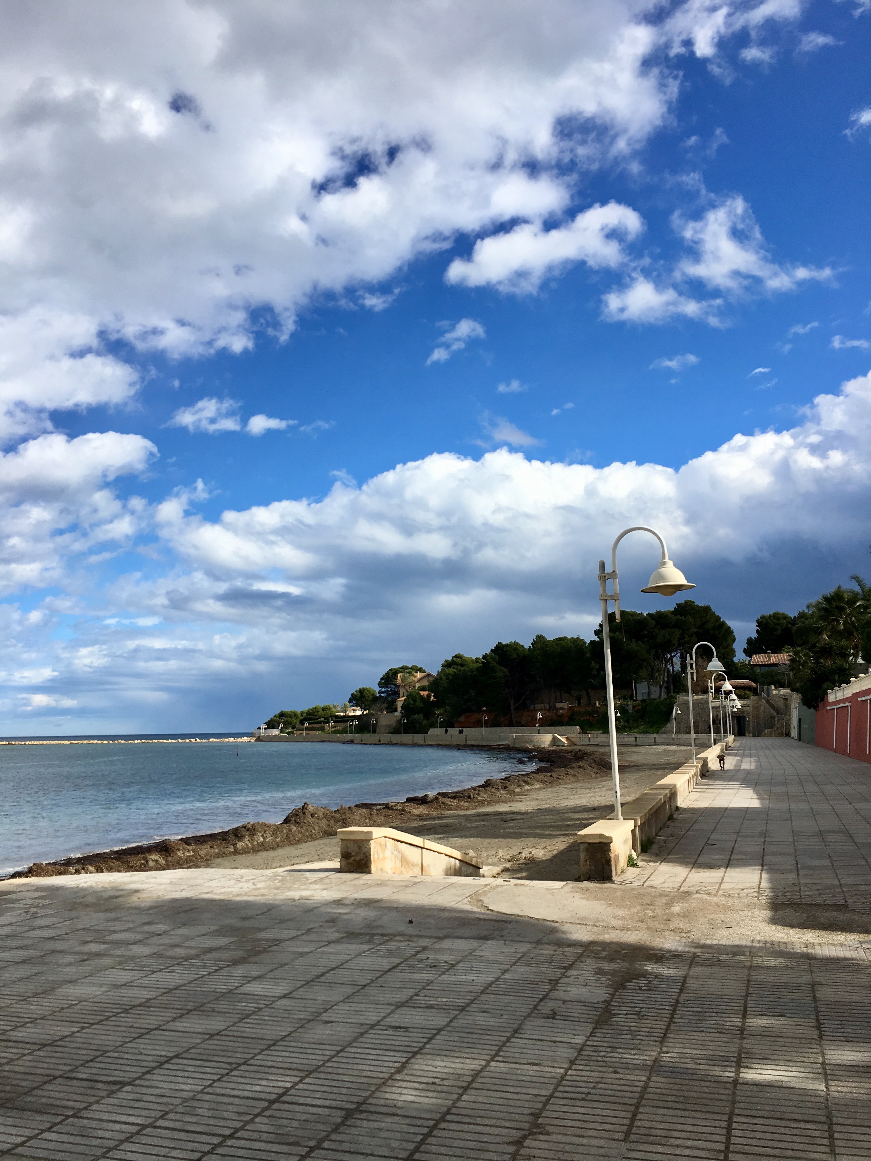 We checked the wind forecast and we decided to see David’s parents in Monte Pego. The forecast was 50-60 knots and with this much wind you can not do much anyway. We were both very happy to leave the yard and have a break for a few days. I can tell you, a break at the Cummane’s feels like a luxurious holiday. Good food, white linen and relaxing with a lovely view to mountains and sea. After some delightful days we arrived back in the yard and Ker Marie was standing well on her chocks, but covered with a thick layer of sand. Free sand blast of 60 knots that was.