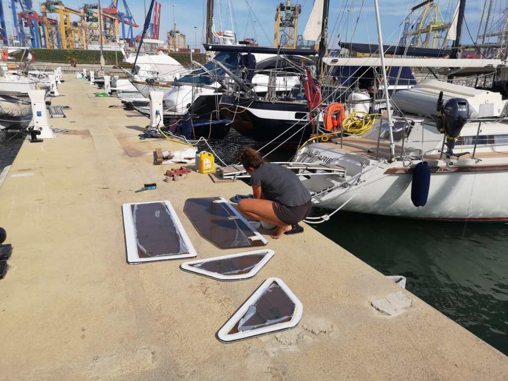 After a few lovely relaxing days in Mahon we hoisted our sails again towards Ibiza. From Ibiza we did our last lap towards Valencia. We have been in Valencia for a month now and we have done a lot of work on the boat. To name a few: We replaced our windows in the cockpit, fixed the furler motor, Sails are repaired, winch maintenance and loads of other (endless) jobs.